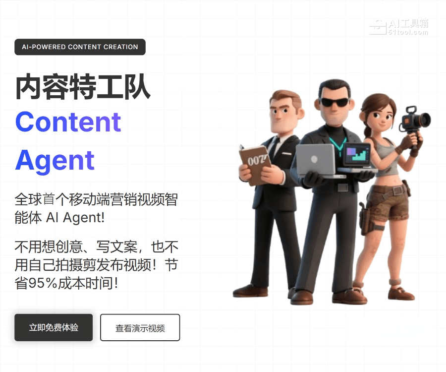 内容特工队是全球首款移动端AI营销视频生成智能体,专为中小微企业、个体创业者及跨境营销人员设计。用户只需输入一句话需求,内容特工队即可全流程自动化生成营销视频,涵盖市场调研、脚本撰写、数字人拍摄、声音克隆、视频剪辑及多平台发布等环节。内容特工队支持20余种语言的实时互译与本地化适配,除了内置视频号、抖音的敏感词和风控规则规避外,也适配TikTok、YouTube等海外平台规则,助力全球营销。内容特工队具备真人AI分身与声音克隆功能,用户上传一个简单的自拍短片和30秒语音,即可生成专属AI分身与克隆声音,强化品牌IP辨识度和信任感。智能运营工具可自动优化视频标题、标签及发布时间,提升曝光率与转化率。