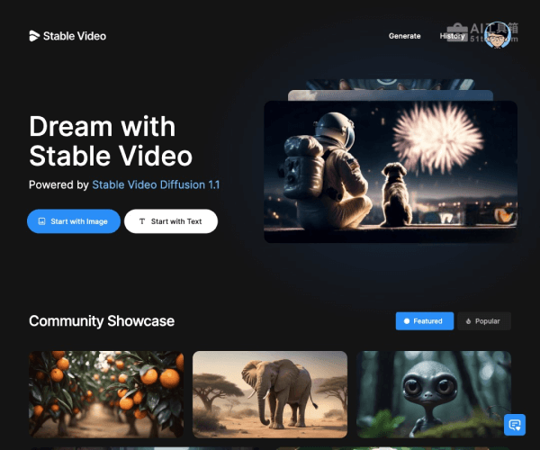 Stable Video由Stability AI推出的AI视频生成工具,基于潜在扩散模型Stable Video Diffusion,可以直接在线快速创建高质量的视频内容。该工具允许用户从文本描述或静态图像出发,生成连贯且逼真的视频序列,实现了从文本到视频和图像到视频的转换。
