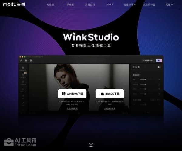 WinkStudio是美图于2023年6月推出的桌面端AI视频剪辑工具,基于移动端Wink APP功能的扩展,支持视频美化、画质修复等视频编辑功能,提供影视级画面渲染、视频生产效率提升以及 AI 助力的视频工具集。相比传统的界面复杂的视频编辑器,WinkStudio采用更高效更直观的操作界面,让视频编辑和美化变得轻松简单。