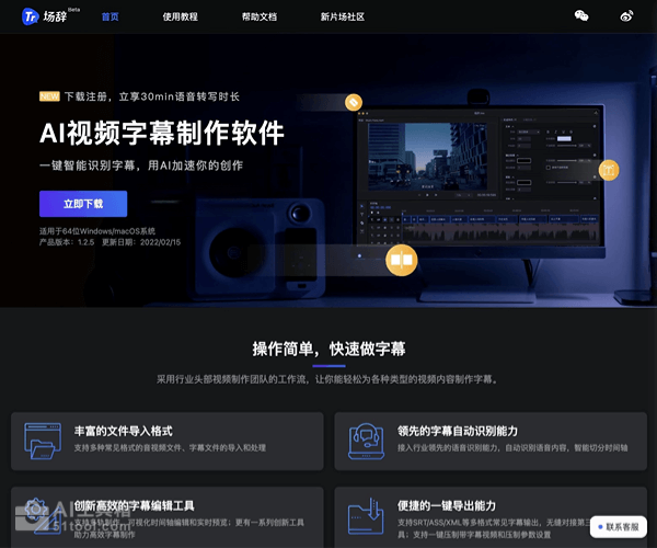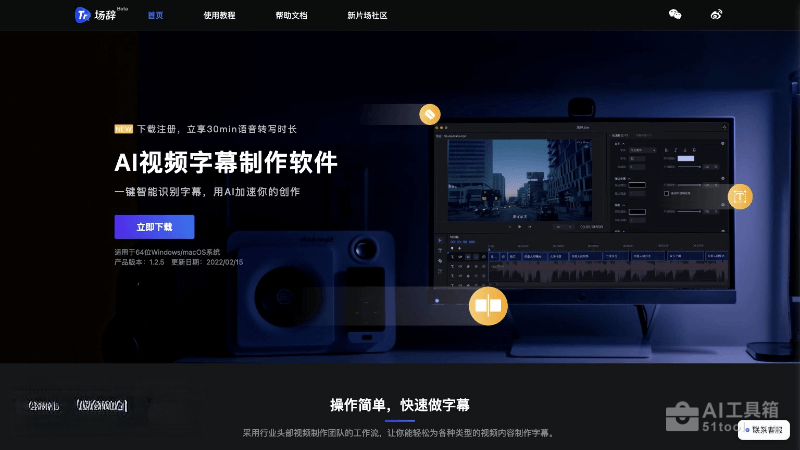 场辞是新片场推出的AI视频字幕制作工具,利用先进的语音识别技术,能够迅速将视频中的语音内容转化为文字,准确率高达97.5%。具备一键加字幕、多轨制作、字幕快捷校对等功能,支持多种视频和字幕文件格式,提供实时预览和创新的字幕编辑工具,帮助用户轻松完成字幕制作。场辞还支持导出SRT、ASS、XML等格式,无缝对接第三方视频制作工具,是视频制作人员的理想选择。