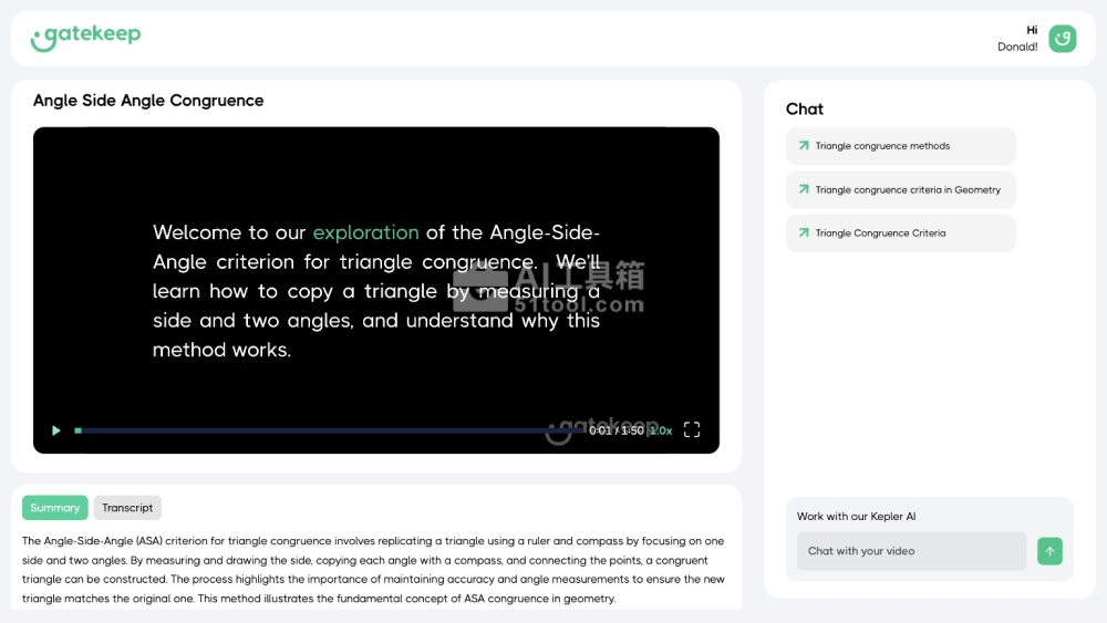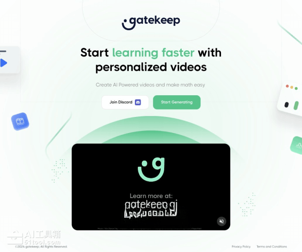 - 专注于数学学习:Gatekeep特别强调其在数学教育中的应用,能够将复杂的数学问题和概念通过视频以简单直观的方式呈现给学习者。