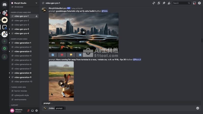 /video,然后再输入提示词,点击Enter键发送,稍等片刻Morph Studio便能生成视频啦