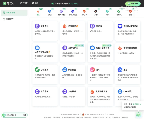 - 适用于多场景多行业,笔灵AI能够根据不同用户的需求,生成定制化场景的文稿。无论是商务、教育、娱乐还是公文写作等场景,它都能帮你搞定。