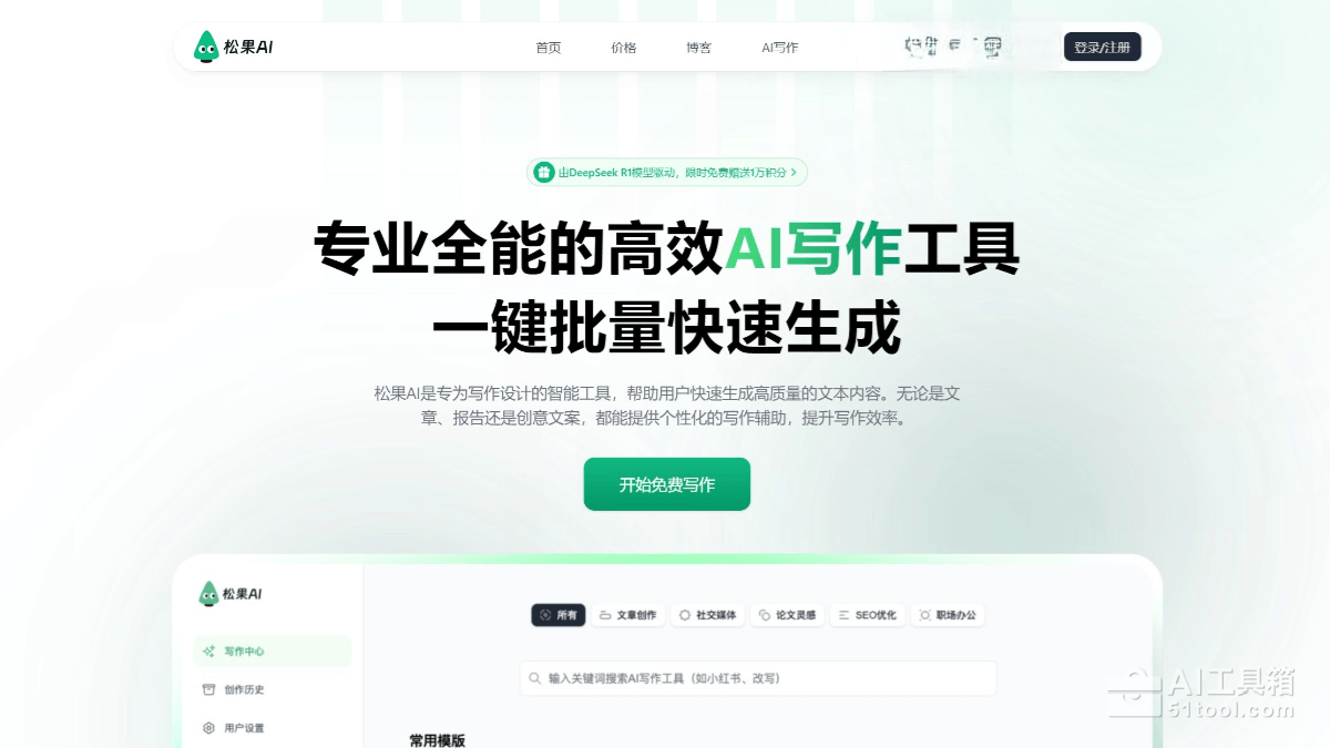 • 登录/注册账号:访问松果AI写作官网 https://songguoai.com/ ,点击右上角的登录/注册按钮
