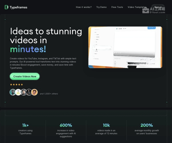 - 访问Typeframes的官网(typeframes.com),点击Create Videos Now然后进行登录注册