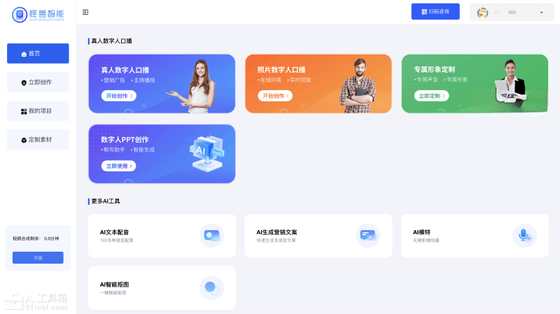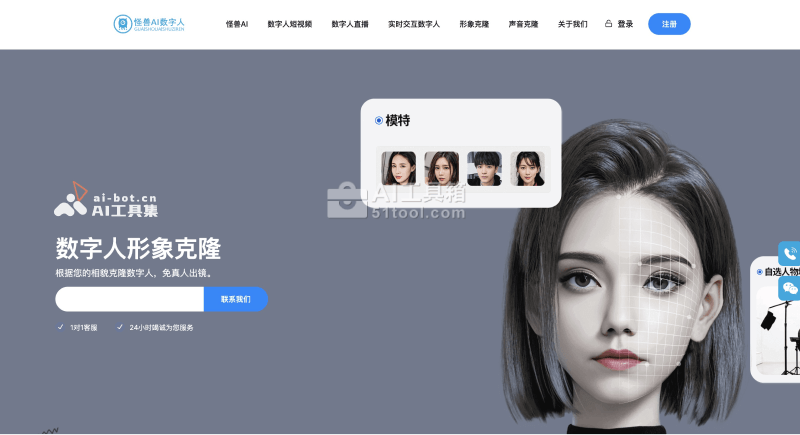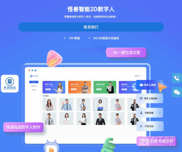 - 数字人直播服务:通过怪兽AI平台,用户可以实现个性化的多平台直播,支持24小时不间断的直播模式。数字人可以定制主播形象,并实现实时互动。