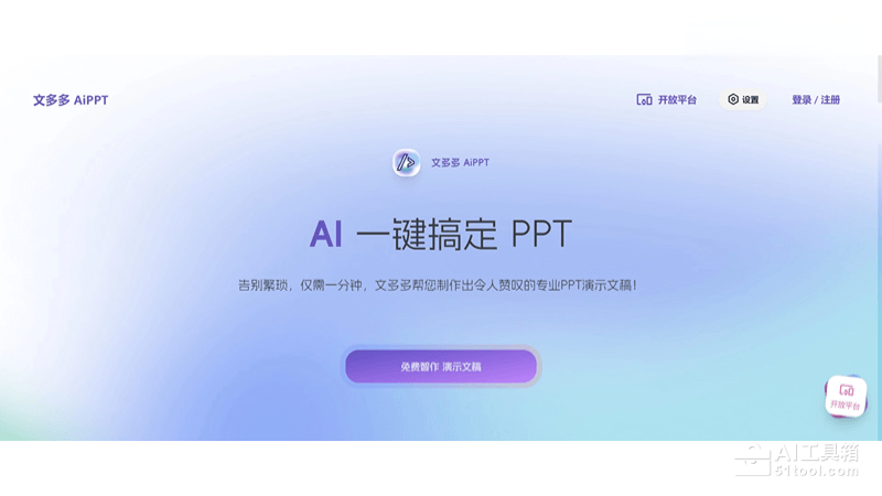 - 一键生成PPT:用户只需输入标题,文多多AiPPT能自动生成演示文稿,省去繁琐的手动编辑过程。