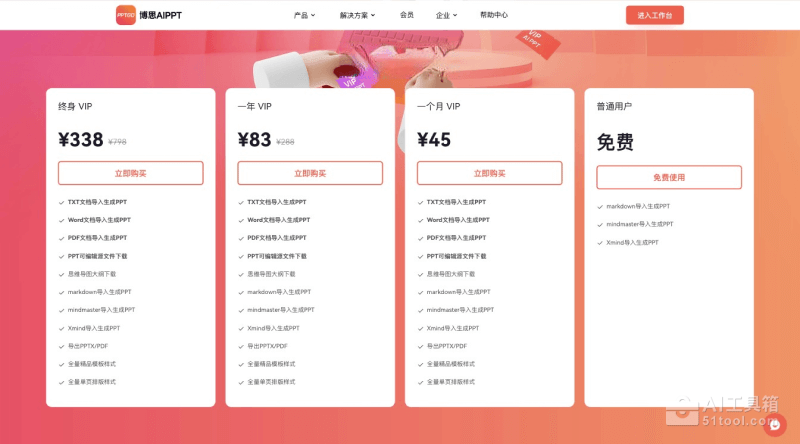 更详细的价格和权益对比请以博思AIPPT的官方信息为准。