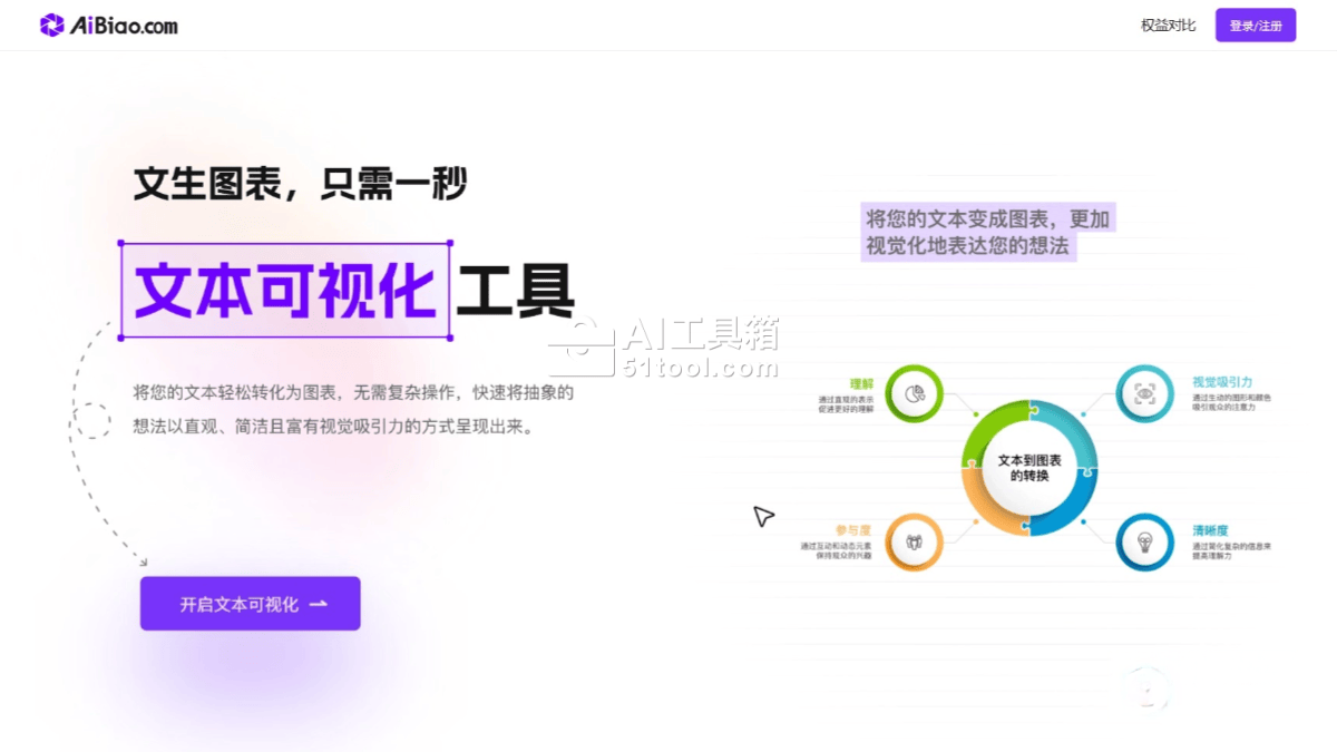 AiBiao(原VisDoc)是AI文生图表工具,基于自然语言处理(NLP)技术,快速将文本内容转化为直观的图表,支持生成柱状图、折线图、饼图等多种类型。AiBiao界面简洁,操作简单,适合初学者快速上手。AiBiao智能文本分析功能支持自动识别文本中的关键信息,生成符合用户需求的图表。AiBiao提供丰富的自定义选项和多种输出格式,适用于数据分析、报告撰写、商业演示和教育等多个领域,能有效提升信息传达的效率和效果。