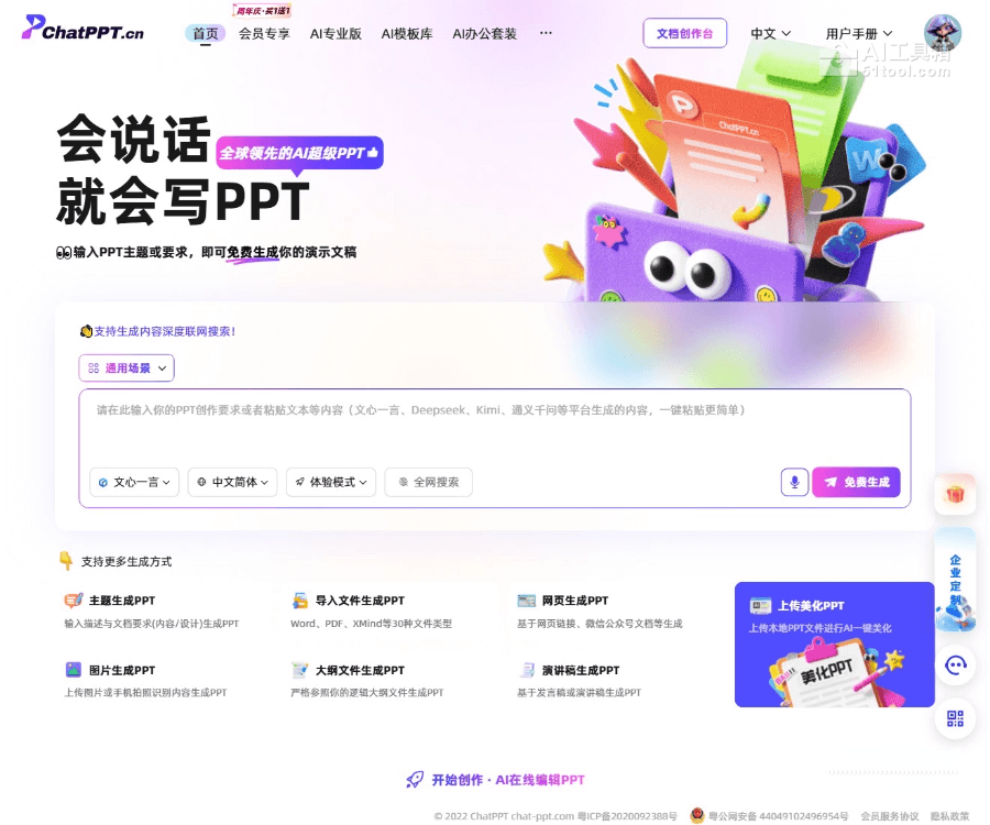 - 普通用户:享受基础的AI生成PPT服务,包含部分高级指令和个人知识库的有限访问。