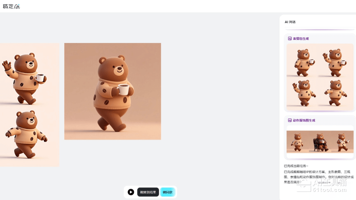 • 使用AI工具:稿定AI社区根据描述提供创意方案。用内置的AI工具来进一步发展和完善设计。