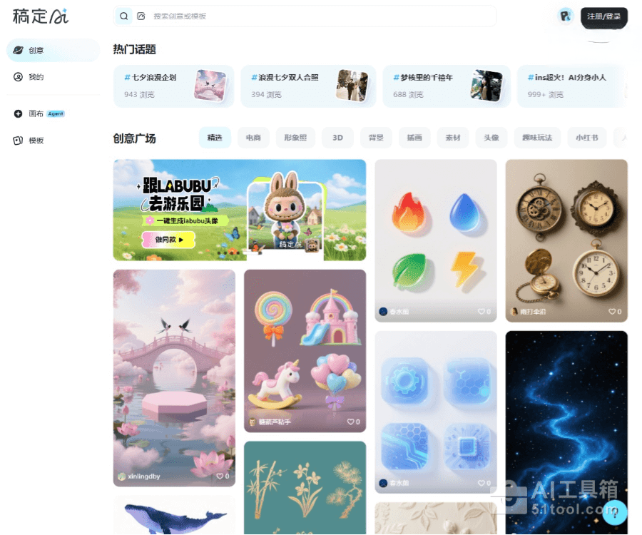 稿定AI社区是稿定推出的设计Agent和AI创意社区,提供丰富的AIGC设计案例,展示最新趋势和风格,用户能在此浏览学习、积累审美。稿定AI社区支持设计Agent、无限画布、多模型接入等功能,支持一站式创作,无需切换工具。