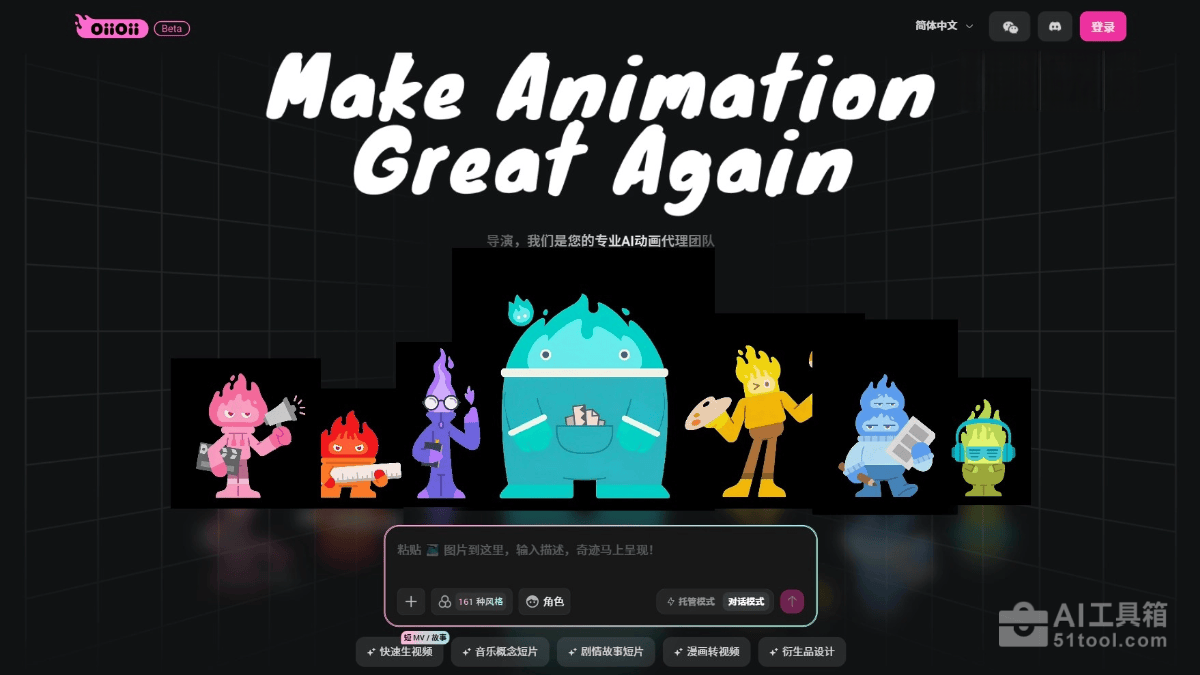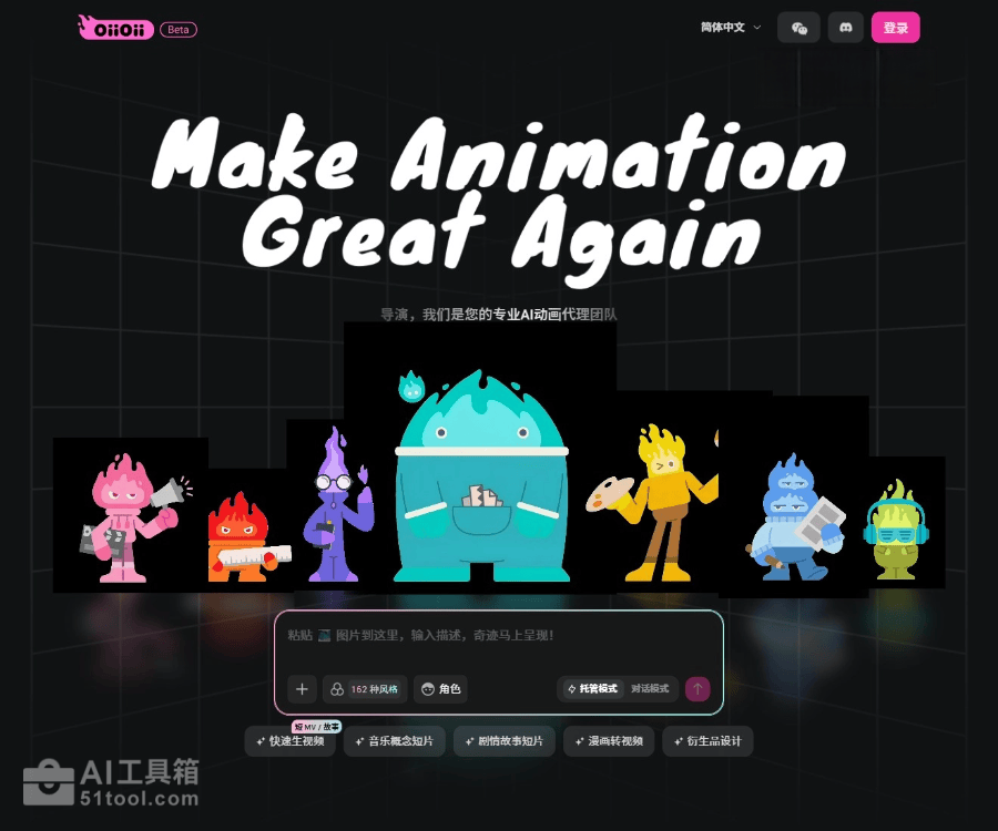 • 一键生成动画:用户输入简单指令或提示词,OiiOii 能快速生成动画短片、视频、图片等内容,降低创作门槛,实现高效创作。