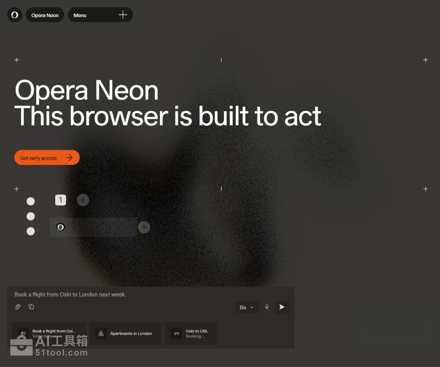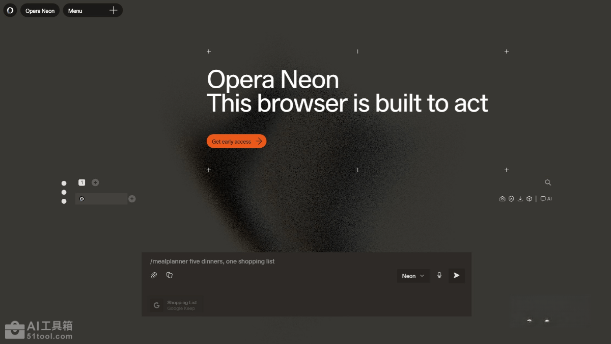 Opera Neon 是 Opera 推出的全新AI Agent浏览器,专为大量使用 AI 的用户设计。Opera Neon 支持创建独立工作空间,支持多信息源分析与操作,如旅行规划、研究学习等。可主动执行任务,如购物、预订等,无需向云端共享密码,保障隐私。Opera Neon 助力用户创作,如生成网站、游戏、报告等,支持离线创作并生成专属链接分享。用户可创建或选用预定义卡片,更高效地获取所需结果。Opera Neon 基于 Opera 浏览器开发,融合了广告拦截器、VPN 等核心功能,同时加入了 AI Agent技术,让用户在网络操作中更高效、安全地完成任务。