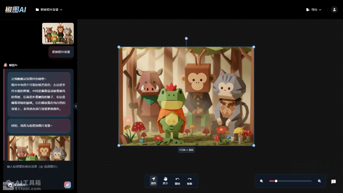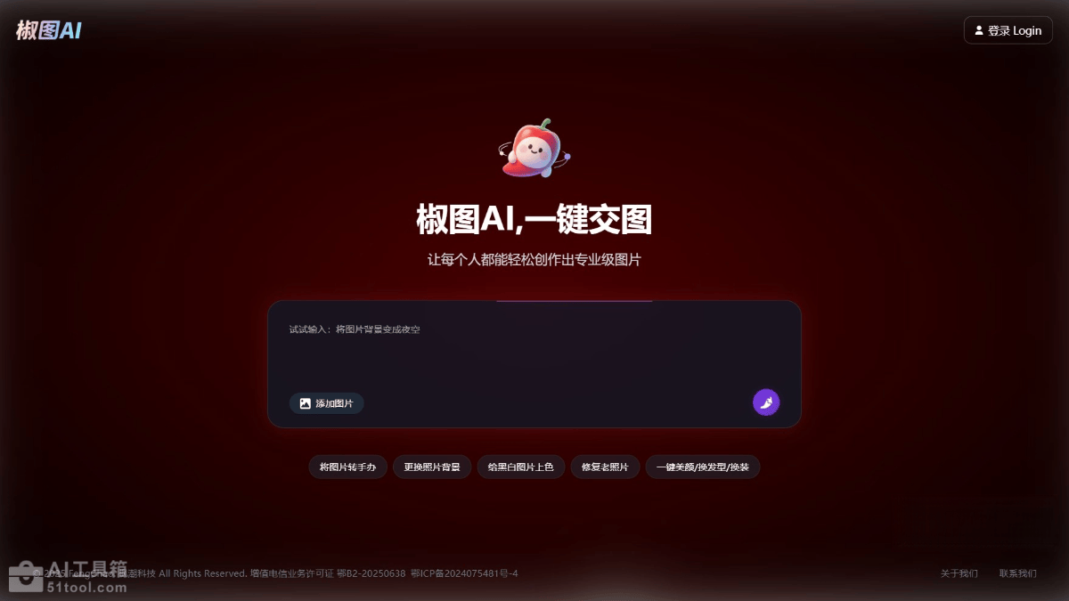 - 使用功能:选择椒图AI的相应功能(如人像美化、背景替换、风格转换等),通过自然语言描述需求,系统自动识别并完成修图任务。