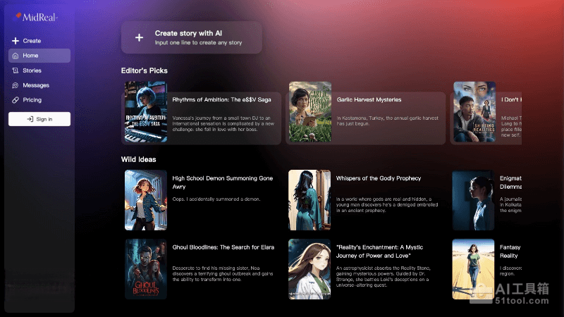 - 生成故事:输入提示后,MidReal的AI将根据用户的输入生成故事内容。