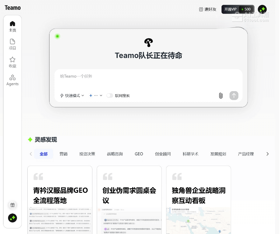 - 多智能体协作:模拟真实团队架构,由“队长”(CEO Agent)统一指挥,下设搜索组、咨询组、写作组、设计组等专业小组,各小组成员(不同AI模型)分工协作,协同完成复杂任务。