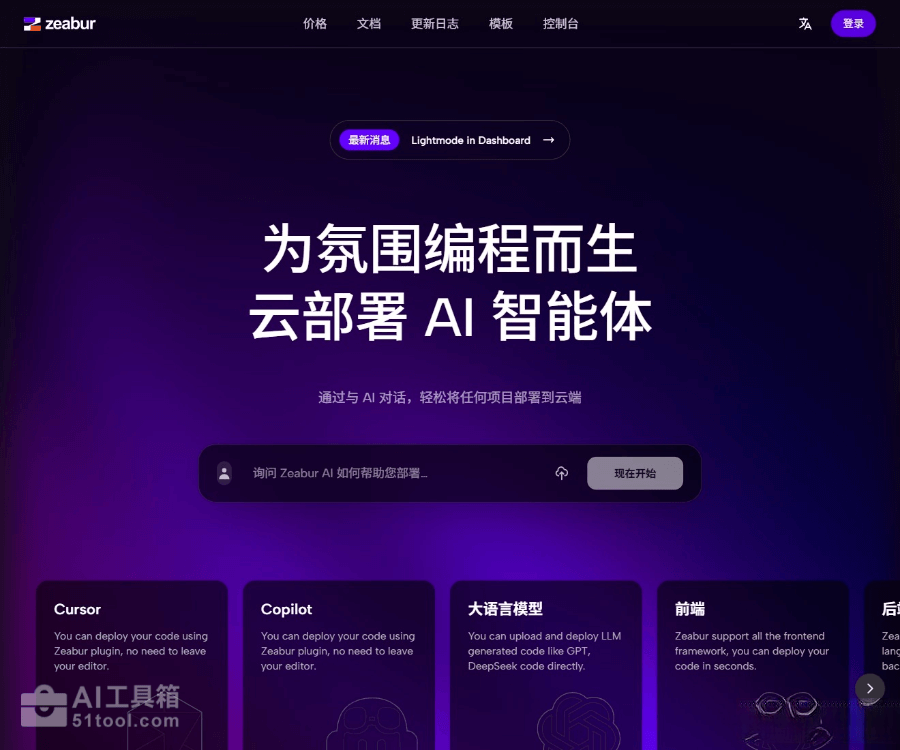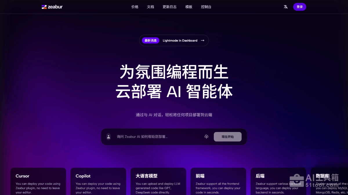 Zeabur 是专为氛围编程设计的云部署AI 智能体。Zeabur 通过 AI 技术实现一键部署,支持多种编程语言和框架,包括前端、后端和数据库。用户通过简单的拖拽或代码推送快速上线项目。