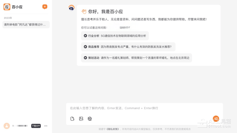 - 登录后在输入框输入问题并发送即可与百小应进行对话