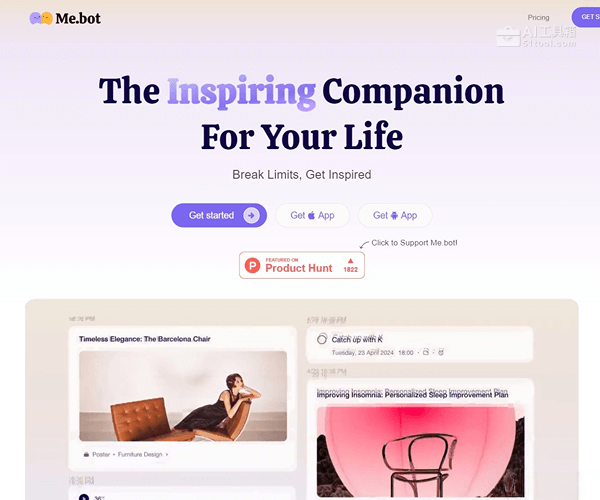 - 灵感生成器:基于用户的记忆输入,Me.bot能够提供创意想法和灵感。
