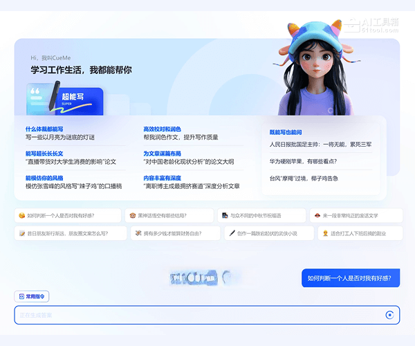 - 使用常用指令:CueMe提供了一系列常用指令,可以快速选择并生成定制化内容,如“帮我润色作文”或“为文章谋篇布局”。