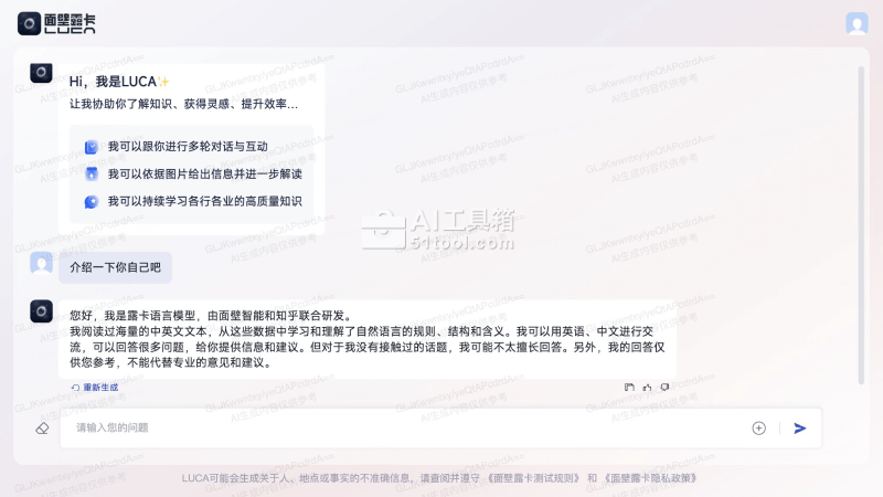 - 在底部输入框中输入你的问题,点击发送按钮即可与Luca进行互动