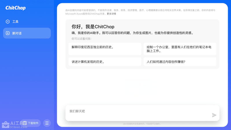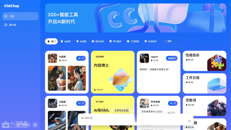 - 登录成功后会自动跳转到AI工具界面,选择你感兴趣的小工具,在底部输入框中输入提示词即可与其对话