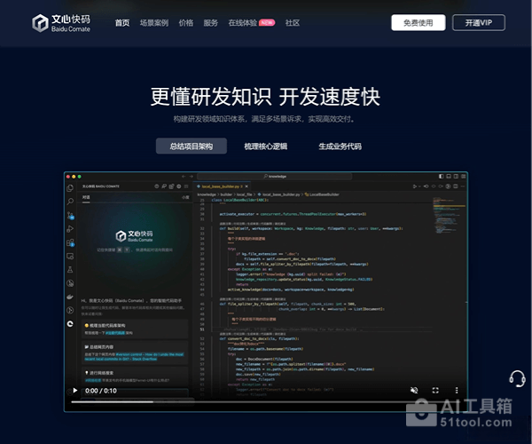- 文心大模型加持:利用百度的文心大模型,全面分析代码上下文、依赖文件、相邻文件的逻辑关系,生成的代码语法更规范、逻辑更缜密。