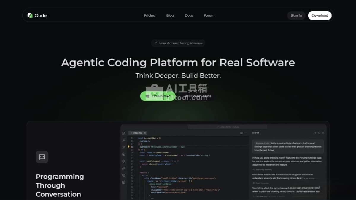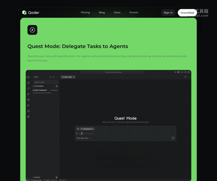 Qoder是阿里巴巴推出的 AI Agentic 编程工具,深度理解整个代码库架构,记忆并学习你的习惯,支持MCP工具生态扩展,提供上下文感知补全、内联聊天和一键「维基化」代码结构,自动选最佳模型。Qoder不是简单的代码补全工具,试图成为开发者真正的「思维伙伴」。预览阶段全功能免费开放,助力开发者专注解决真实软件难题。