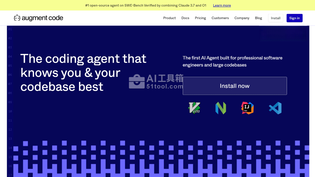 - 安装插件:根据使用的 IDE,选择安装对应的插件。Augment Code支持VS Code、JetBrains、Vim等。