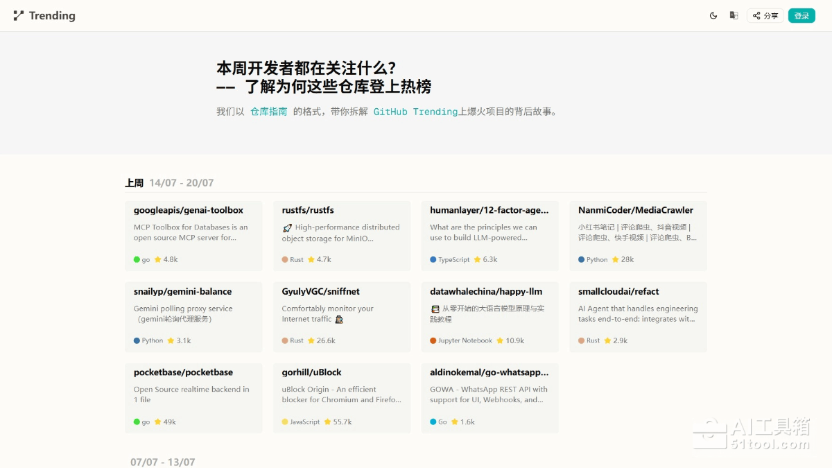 • GitHub趋势解读:用仓库指南形式拆解GitHub Trending上的热门项目,提供深度背景信息。
