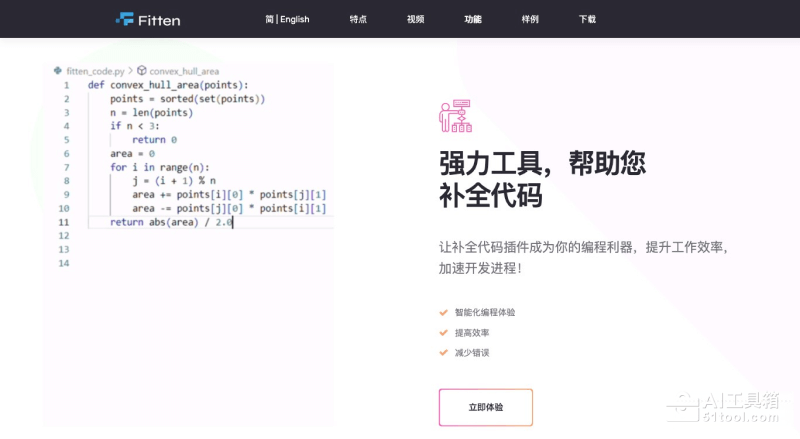 Fitten Code是一个由非十科技自研代码大模型驱动的AI代码助手,支持包括 Python、JavaScript、TypeScript、Java、C、C++ 等在内的80多种编程语言。该AI编程助手可以自动进行代码补全,并可以生成代码、生成注释、编辑代码、解释代码、生成测试、查找Bug等,减轻了开发者的工作负担,还提升了代码的质量和开发效率。
