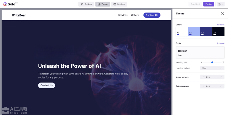 Solo(Solo AI Website Composer)是火狐浏览器的母公司Mozilla最新推出的一个创新项目——面向个人企业家、自由职业者的一个人工智能网站创建工具。借助AI的能力,用户无需具有编程经验和代码知识,输入文本提示、可视化添加内容块、图像、布局、主题即可创建精美视觉效果的网页和网站。