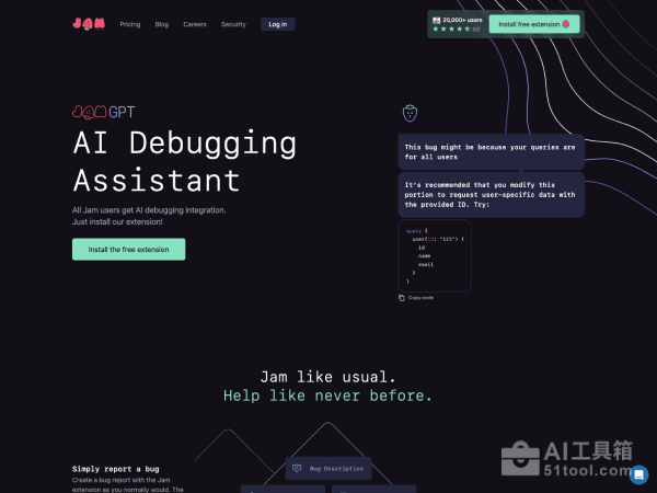 JamGPT是Bug报告工具Jam最新推出的AI Debug助手,JamGPT可帮助开发人员分析所有的Bug报告细节,在你开始阅读之前就找到相关原因和解决方案。