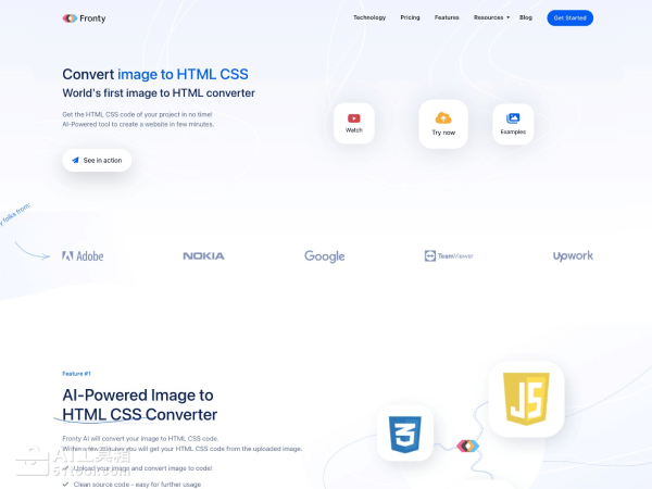 Fronty基于人工智能技术,可以从图像、屏幕截图、设计或模型中生成干净的 HTML/CSS 代码。该AI图像到代码转换器具有以下优点: