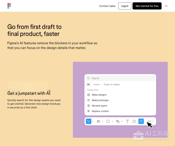 Figma AI是由在线设计和协作平台Figma推出的一系列原生的人工智能设计工具,提供视觉搜索、AI增强的资产搜索、自动文本和图像生成等创新功能,帮助设计师突破创意障碍,提高工作效率。这些工具能够理解设计元素的语义,快速定位所需资源,生成逼真的文案和图像,简化原型制作流程,自动重命名图层,从而让设计师能够专注于更有价值的创意和问题解决工作。目前,Figma AI在公开测试阶段,所有用户都可以免费试用。