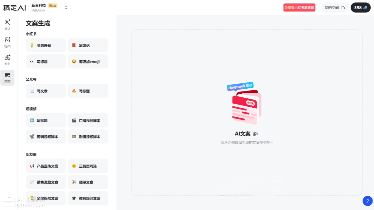 - 注册与登录:访问稿定AI文案的官方网站,注册账号并登录。