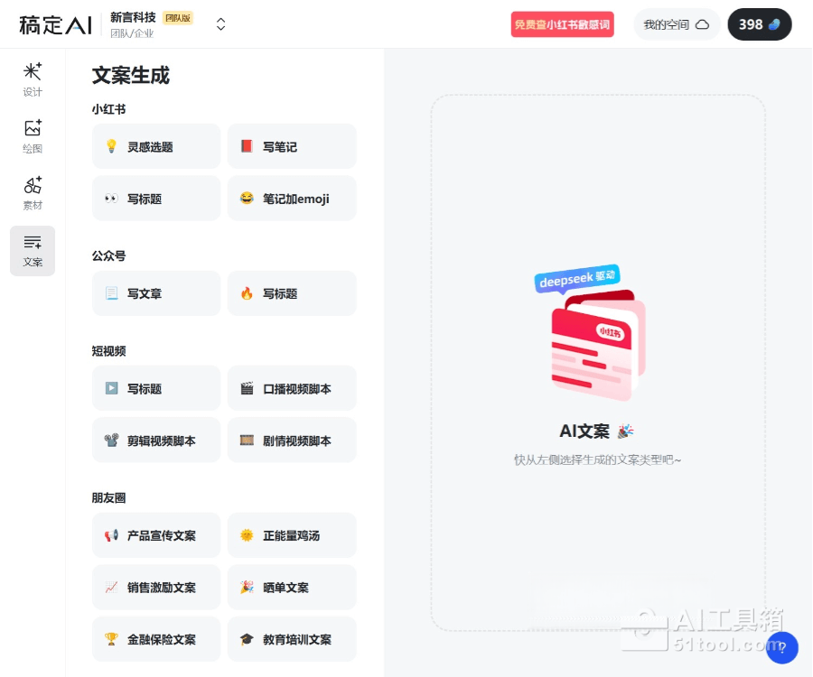 - 多场景应用:稿定AI文案支持生成小红书笔记、公众号文章、短视频脚本、朋友圈内容等多种场景所需的文案内容。