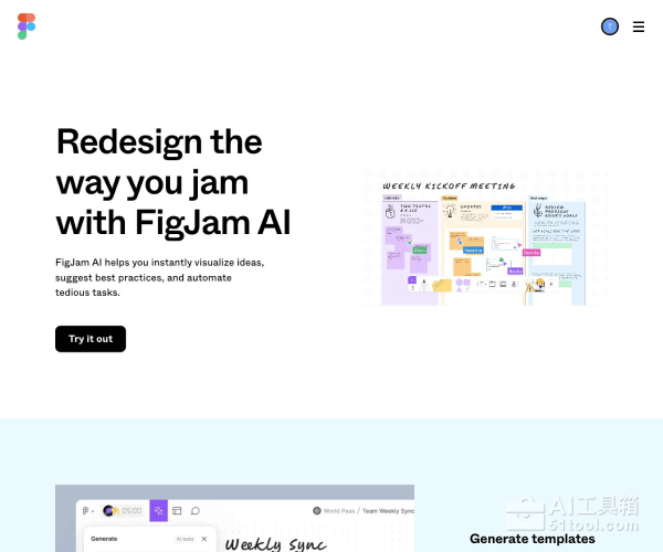 FigJam AI 是在线设计协作平台 Figma 为其白板工具 FigJam 最新推出的 AI 套件,在此前的 Jambot 插件进化升级而来,可为常见设计和规划项目创建开箱即用的模板,帮助设计人员或团队协作激发灵感,快速进行头脑风暴和可视化想法。