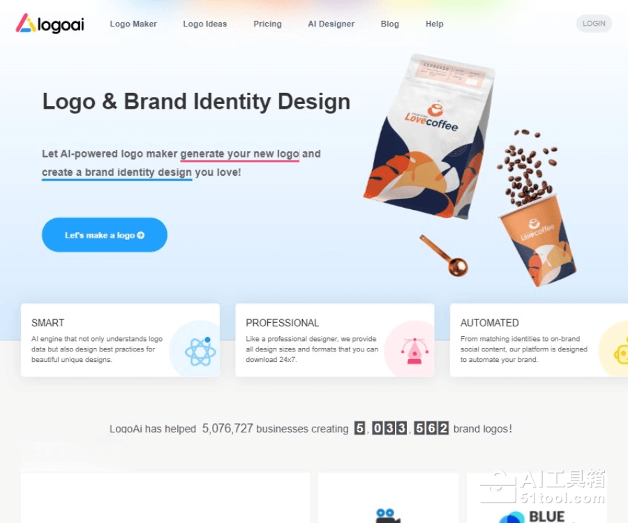 - 智能Logo生成:用户只需输入品牌名称、口号和行业类型,LogoAI基于AI算法生成多个Logo设计选项。