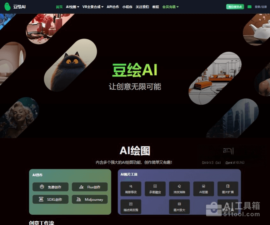 - 选择功能:豆绘AI提供了多种功能,如AI绘图、AI全景合成等。根据你的需求,选择相应的功能。