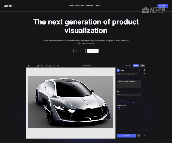 通常在Photoshop中用手绘出一个概念设计可能需要几个小时,而在Vizcom AI的深度学习模型帮助下,设计师可以在画图的时候快速进行高质量的渲染,并支持导入自己的图纸。Vizcom的免费版支持无限制的文件数量和渲染次数,付费版支持团队协作/管理、无限次的导出和自定义AI模型。