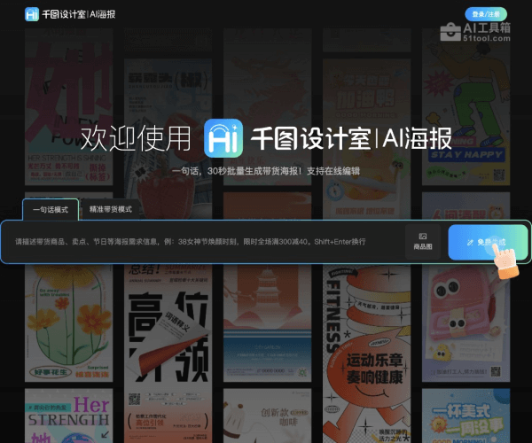 千图设计室丨AI海报是图库素材平台千图推出的AI海报宣传图生成工具,能一键生成支持在线编辑的带货海报,覆盖热点、节日、多创意风格等100+真实营销场景。无论是电商主图、电商海报、电商banner,还是社交媒体的营销视频,千图设计室丨AI海报都能让营销设计变得轻松无压力。千图设计室丨AI海报特别适合需要快速产出营销物料的电子商务运营人员、互联网行业运营岗、美术指导、创意总监等营销领域的专业人士。
