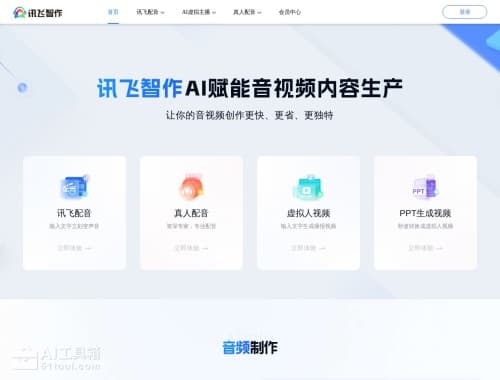 - 选择功能:登录后,您可以看到讯飞智作提供的不同功能,如AI配音、虚拟数字人视频生成、PPT生成视频等。根据您的需求选择合适的功能。