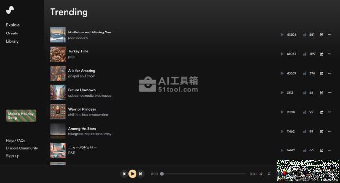 2. 点击左侧的Create按钮,然后登录注册账号,登录成功后输入歌曲描述