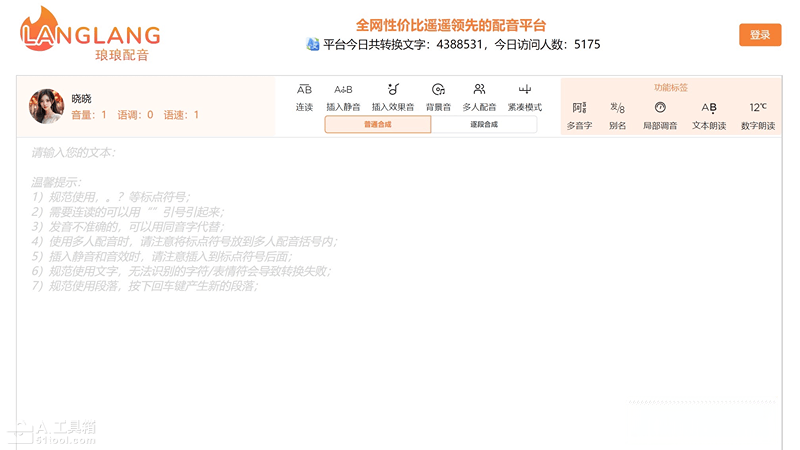 - 访问网站:打开浏览器,访问琅琅配音的官方网站(lang123.top)。
