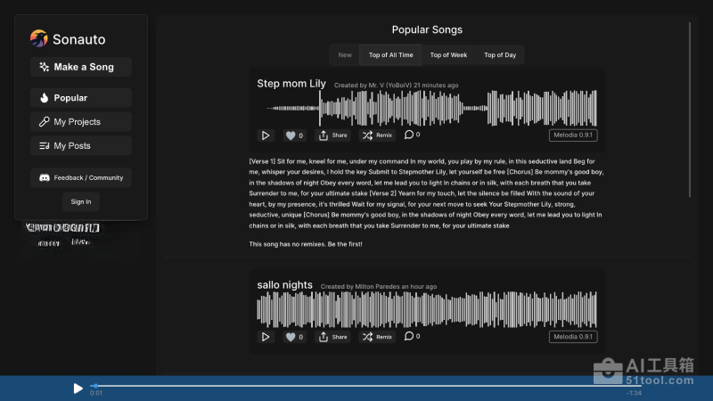 - 无需乐理知识:Sonauto降低了音乐创作的门槛,用户无需具备专业的音乐知识和技能,就能够创作出高质量的音乐作品。