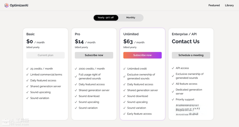 - Unlimited无限版:90美元每月(年付的话折合63美元每月),提供无限的积分、拥有生成声音的独家所有权、访问每日精选音效、使用共享生成服务器、音效升级、音效变化、早期功能访问等权益