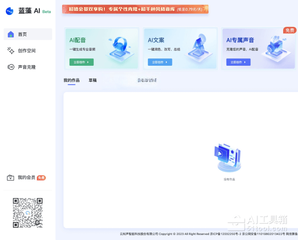 - 免费版:提供有限的免费发音人选择、5次快速声音克隆、每天500字的试听权限、每月1000字文案生成