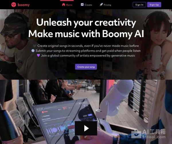 AI音乐生成:基于先进的AI算法快速生成不同风格的原创音乐作品。类似于Boomy的工具
